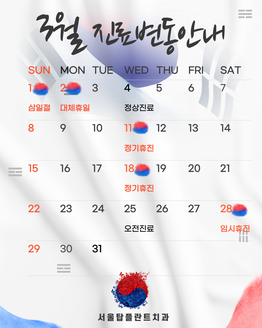 v 3월 2일(월) 대체휴일로 휴진